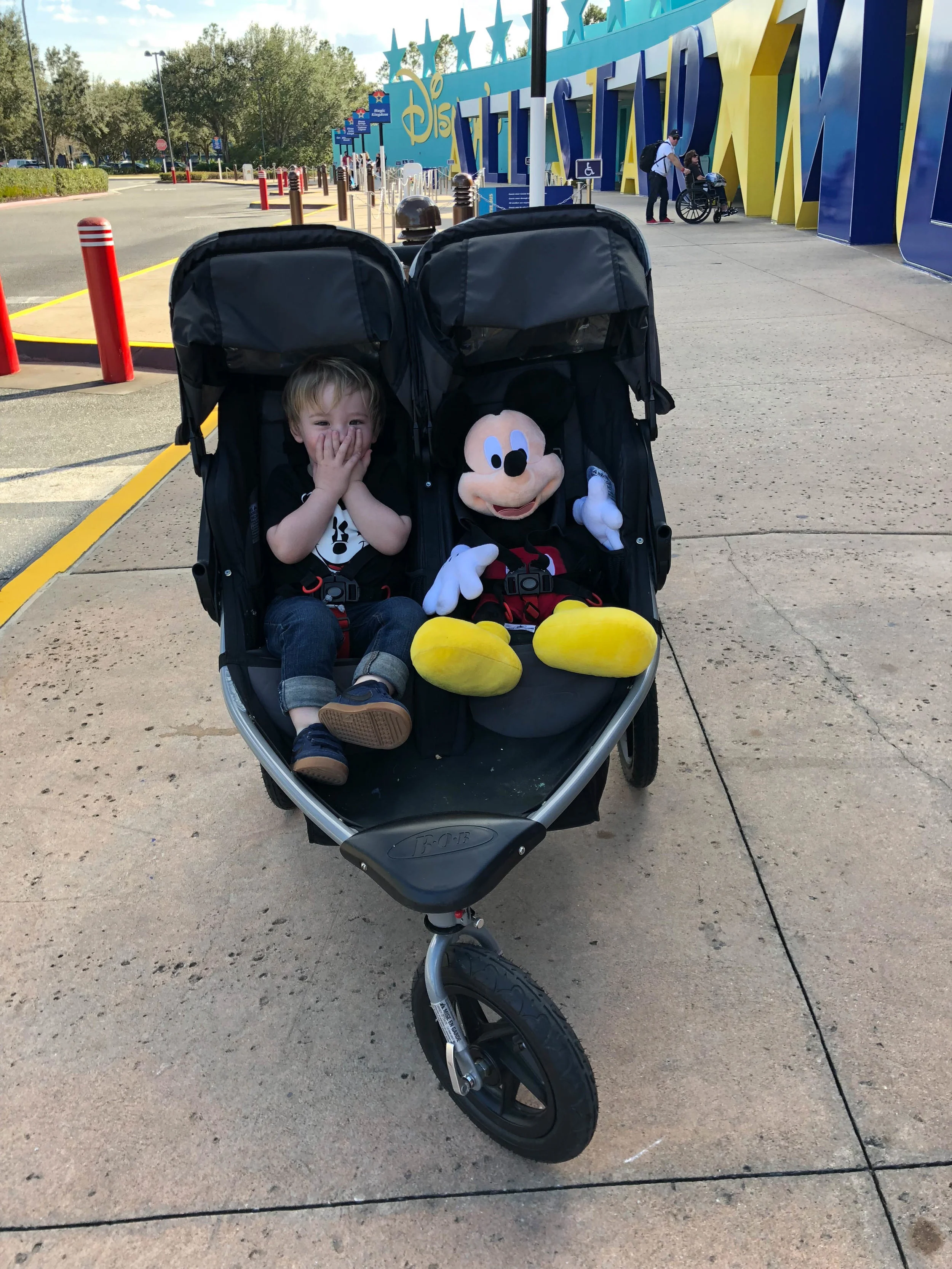 Bring a duffel bag – You will want to bring an empty duffel bag to the park. We used this under the stroller. It was perfect for anything we stored under the stroller because we could put everything right into the bag. I love this because you often have to fold up your stroller and then you’re left with all kinds of things to carry that have been stored in your stroller. This helps with checking into the park and with any little things or big things that we picked up throughout the day. Added bonus – the extra bag was perfect for a carry on for the way home with all our extra goodies.