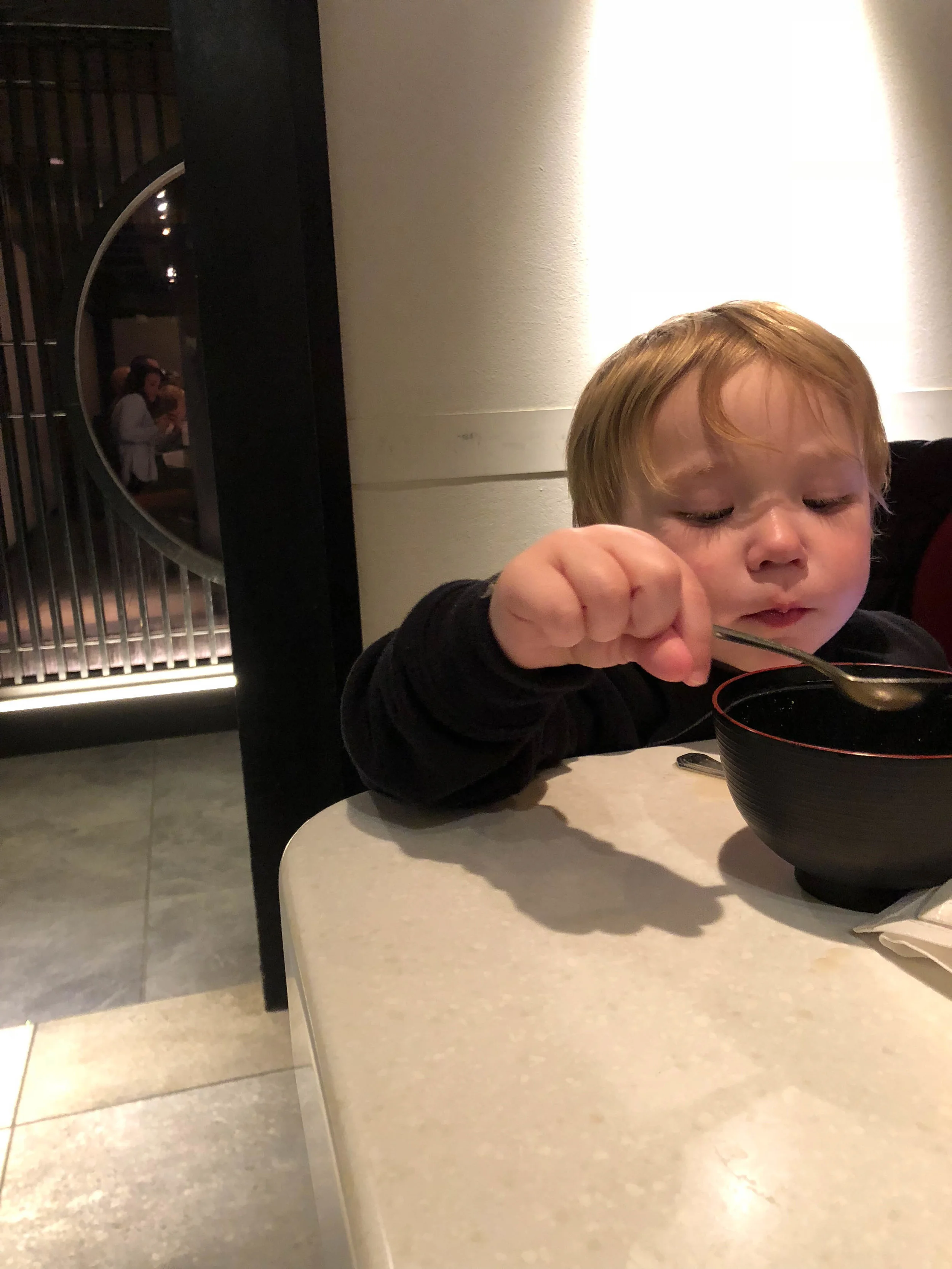Teppan Edo – I love this place so much! Enzo couldn’t get enough of watching the chef cook right in front of us. We ordered steak and sea scallops. Ziggy was obsessed with the miso soup!