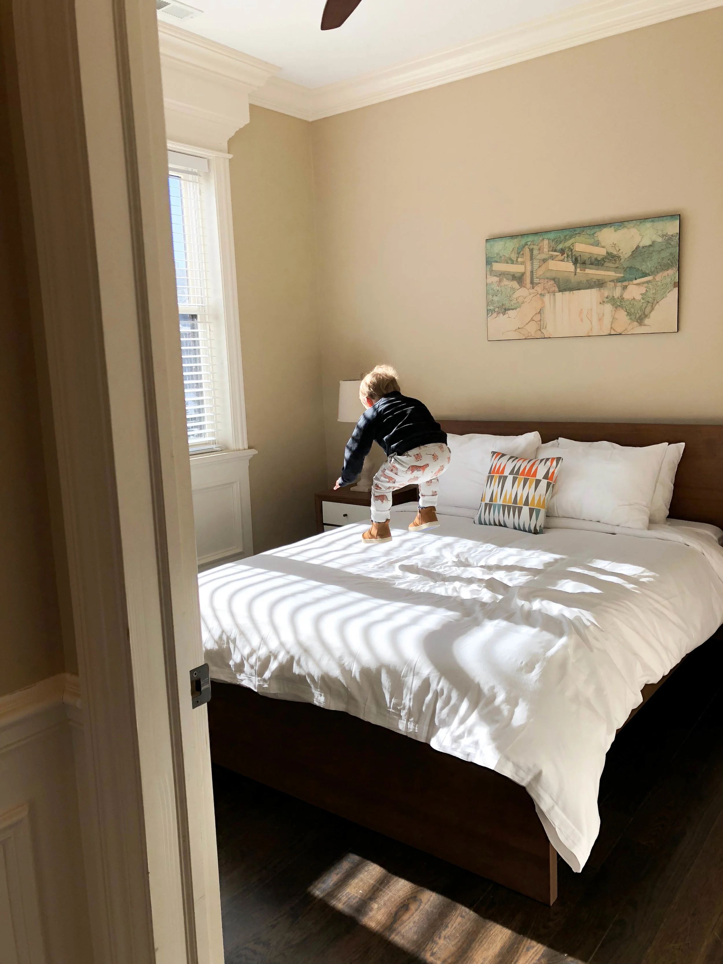 For our stay in Chicago last weekend we stayed here and absolutely loved everything about it! What first sold me on the place was there were three bedrooms. Knowing that Ziggy is still and napper and Enzo does every once in a while we love the convenience of having a quiet place for them to regroup for the day.
